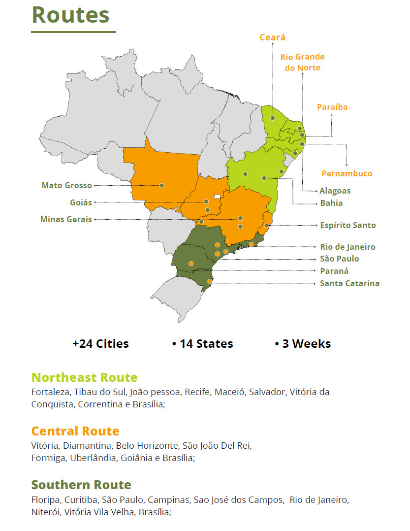 The tour will last three weeks and will end in Brasília for the Mahashivaratri Puja. It is open to Sahaja Yogis worldwide